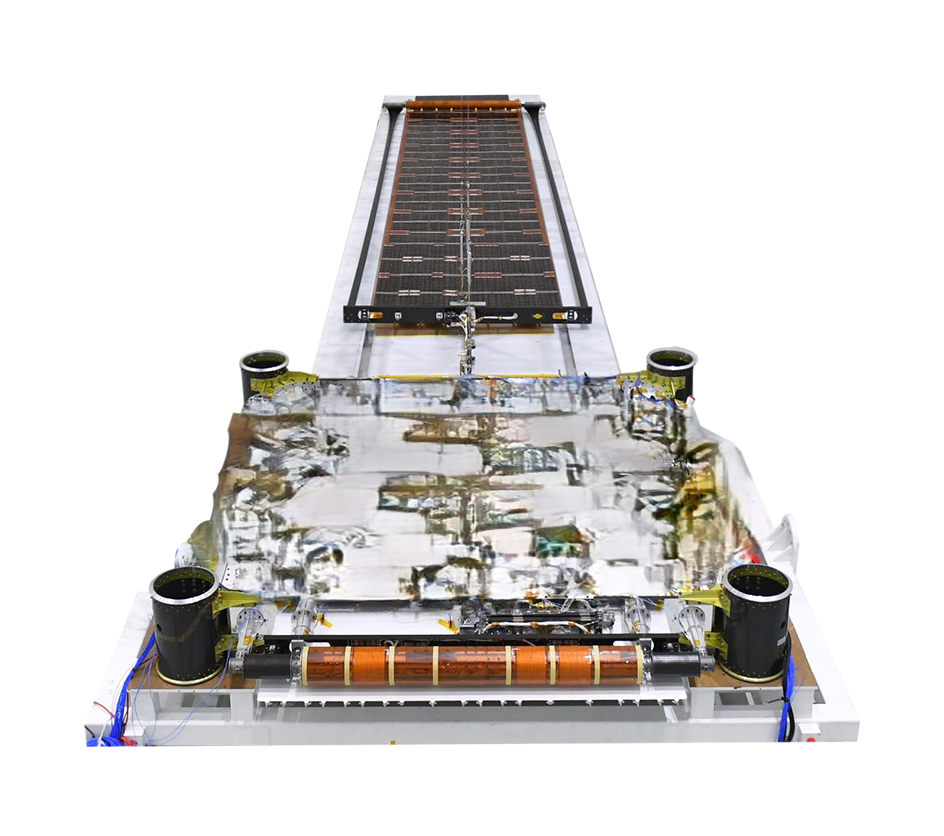 Our flexible triple-junction GaAs solar array exceeds 32% conversion efficiency at the AM0 spectrum. Compared with conventional rigid foldable designs, it reduces weight by ~50% and stowed volume by ~60% (with roll-out structures), enabling lighter satellite launches and large-scale constellation deployments.